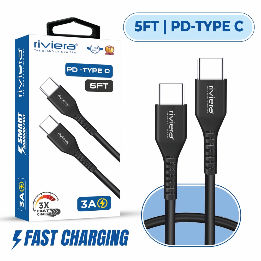 Riviera PD-Type C 5FT Fast Charging Cable - Black